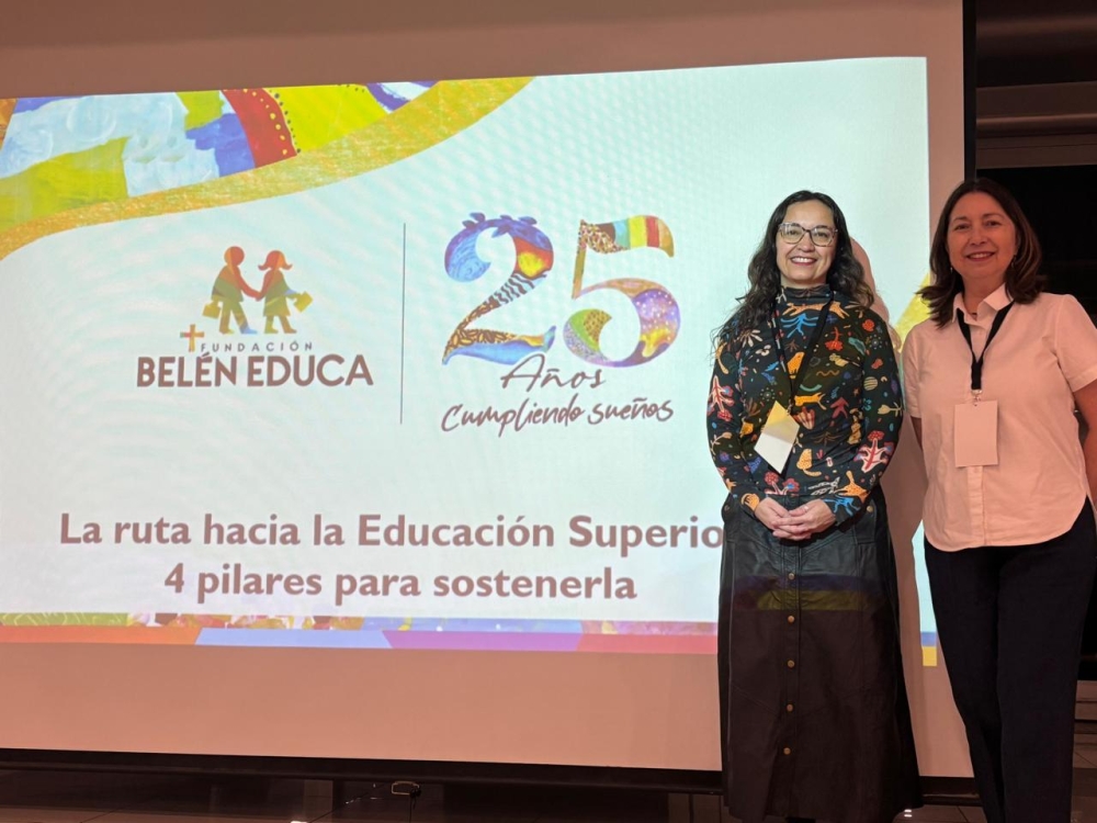 Durante la jornada, nuestras directoras Mónica Luna, directora de Gestión Pedagógica, y Claudia Lara, directora de Liderazgo Educativo y de Escuela de Liderazgo Kuy Kuy presentaron el taller: “La ruta hacia la educación superior y los cuatro pilares para sostenerla”, que despertó gran interés entre los asistentes y permitió visibilizar el trabajo que realizamos en la Fundación para acompañar a nuestros estudiantes en su proceso de continuidad de estudios.
