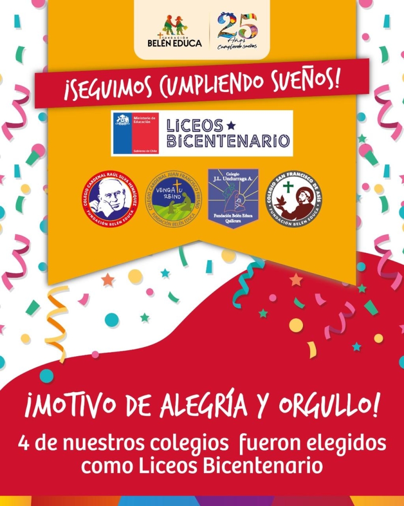 En Fundación Belén Educa, cada logro de nuestras comunidades escolares representa un paso más en el camino de brindar oportunidades educativas que transformen vidas. En el marco de nuestros 25 años de historia, recibimos con profunda alegría y orgullo el reconocimiento del Ministerio de Educación que designó a cuatro de nuestros colegios como Liceos Bicentenario, destacando su compromiso con la excelencia, la formación integral y la mejora continua.