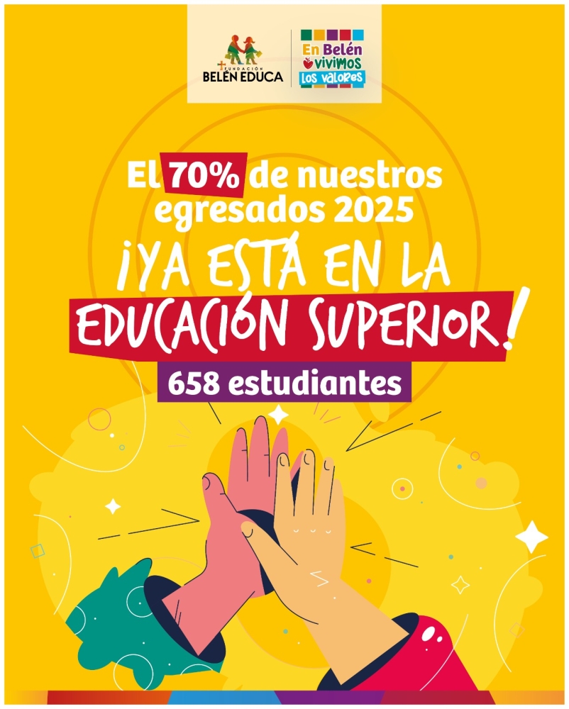 En Belén Educa celebramos un nuevo paso en el camino educativo de nuestros estudiantes. Un total de 658 egresados de la generación 2025 de nuestros colegios hoy continúan estudios superiores, alcanzando una tasa de 69,78% de ingreso inmediato.